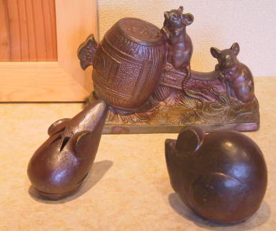 | 「子」ひらたく言えばネズミです。 しかしながら、ネズミといえども 干支の十二支の始まりなのです。 その昔、干支を決める競争で、、 「牛の背中に乗って体を休め、 ゴール前では自らが頑張り一番乗り」 そんな、お話はご存知ではイナでしょうか? 利口さと機敏を持ち合わせています。 細く柔らかい毛を、 鋭い動きをイメージした 香炉窓を開けた 伏せ香炉 |