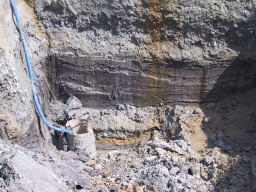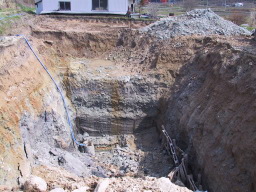 地下8メートルの位置にある 黒土の粘土層です。 ![]() ユンボのアームを最大に伸ばして 採掘をしていきます。 |