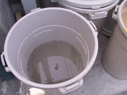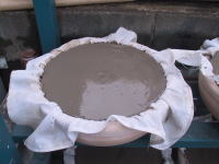 | 解砕の原土を同じように水簸をして フルイを通して粘土にしていきます。 水槽には黒い藁の破片が、 浮揚してきます。 |