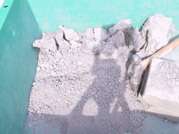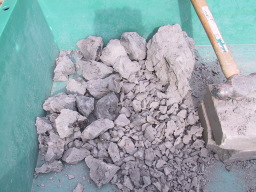 最初はカチカチという音が、 小さくなるとピチピチと弾くような 音に変わります。 バケツ一杯の乾燥粘土の解砕が 一日の仕事です。 |