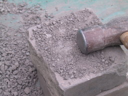 これが、本当に大変です、 とにかく、石のように硬く 小さな粒まで、本当に硬いです。 100gの粘土を作るのにどれぐらい ハンマーを振るのかな? なんて、考えてしまいます。 |