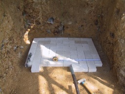 まずは敷部分 水分がたまることを考慮して、モルタルはなし 隙間を空けての、捨て敷き煉瓦です。 |