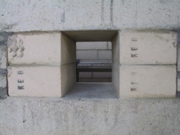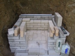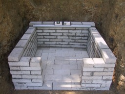 煙突の外側部分は雨にあったり山水が出てきたり 水対策としてコンクリートモルタルを使います。 外側は格安のエコ煉瓦 |