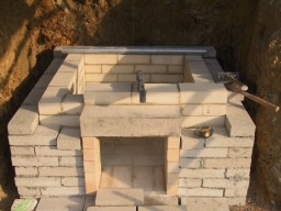 内側の耐火煉瓦は積みやすいですが 外側のコンクリートモルタルは 動かないので非常につぎ方が難しいです。 自信がなくなります、、。 |