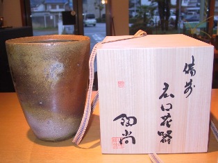 | 備前 蓋付マグカップ | 備前 四方花入 |